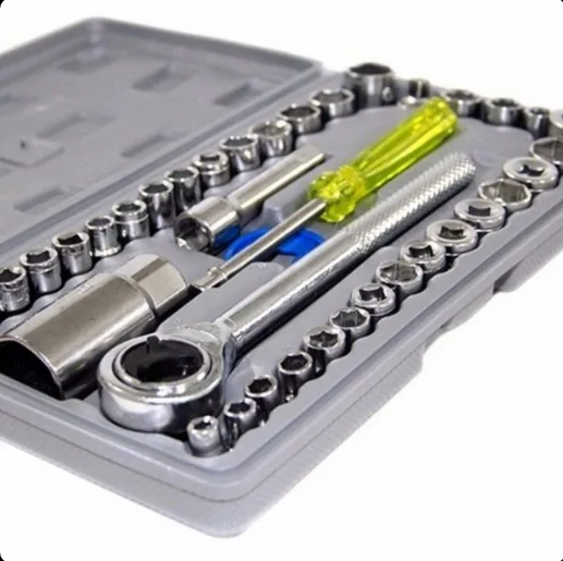 Povoljni set gedora ključeva dobrog kvaliteta sa plastičnim koferom za nošenje i 40 delova.