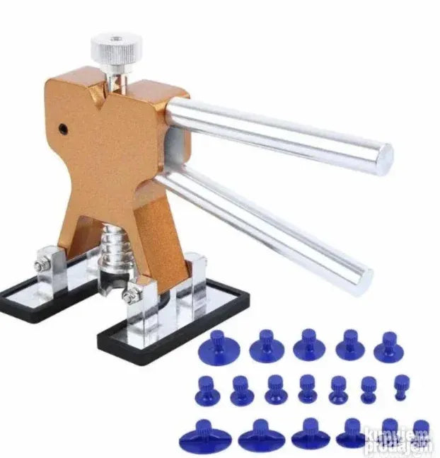 Ovaj magični alat za izvlačenje radi na principu kliješta. Sastoji se od dvije ručke i dvije gumene stopice između kojih se nalazi opruga za podizanje lima, tj. izvlačenje udubina.