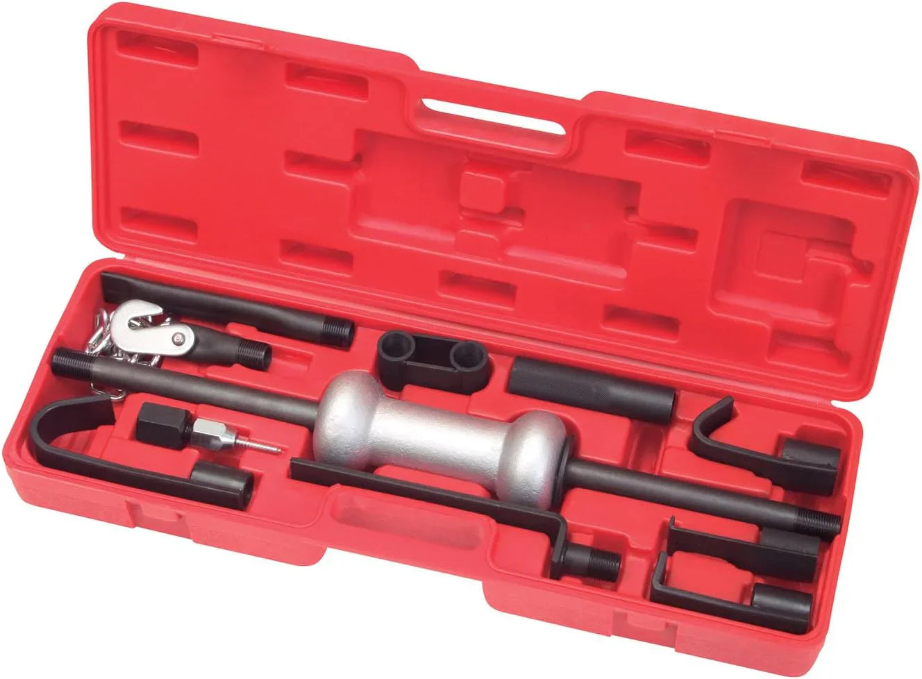 Set za popravku limarije sadrži razne vrste hvataljki, maljeva i kuka za izvlačenje i uklanjanje udubljenja. Savršen komplet za popravku karoserije, koristan u svakoj radionici.