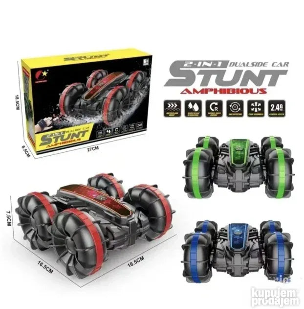 * Off Road Stunt Car - Dvostrano trčanje, okretanje za 180 stepeni i rotacija za 360 stepeni. Sve se može uraditi osim letenja. Off-road čudovište ga podržava lako da se probije kroz kopno, peščanu plažu, blato, travu ili more!