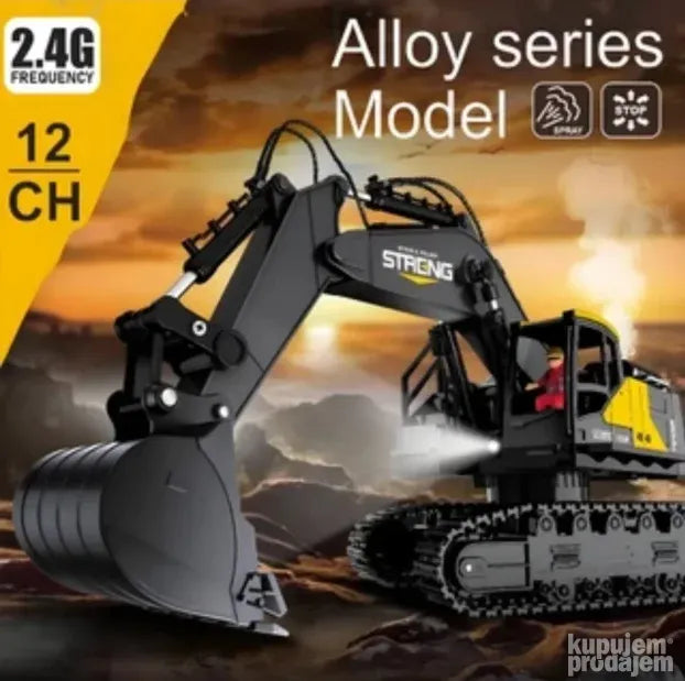 Veliki bager na daljinsko upravljanje koji se savršeno uklapa u boje stvarne građevinske mašine.