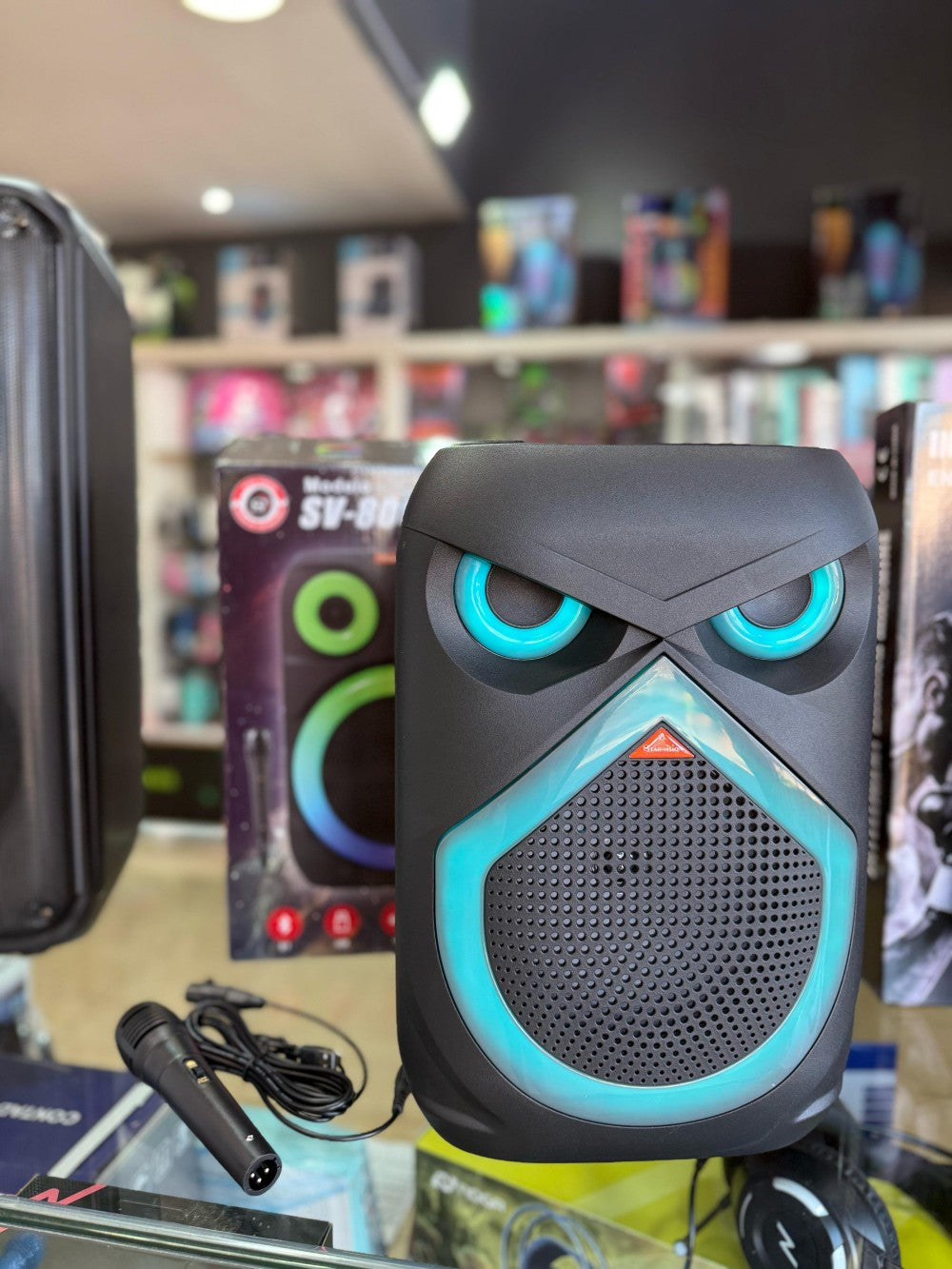 Karakteristike: Zvučnik je prenosiv i ima dizajn u obliku sove sa svetlećim očima.