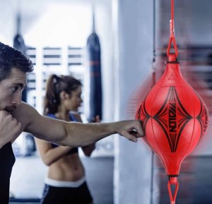 Boks lopta za udaranje koja se montora pomoću dva rastegljiva kanapa na njenim krajevima.