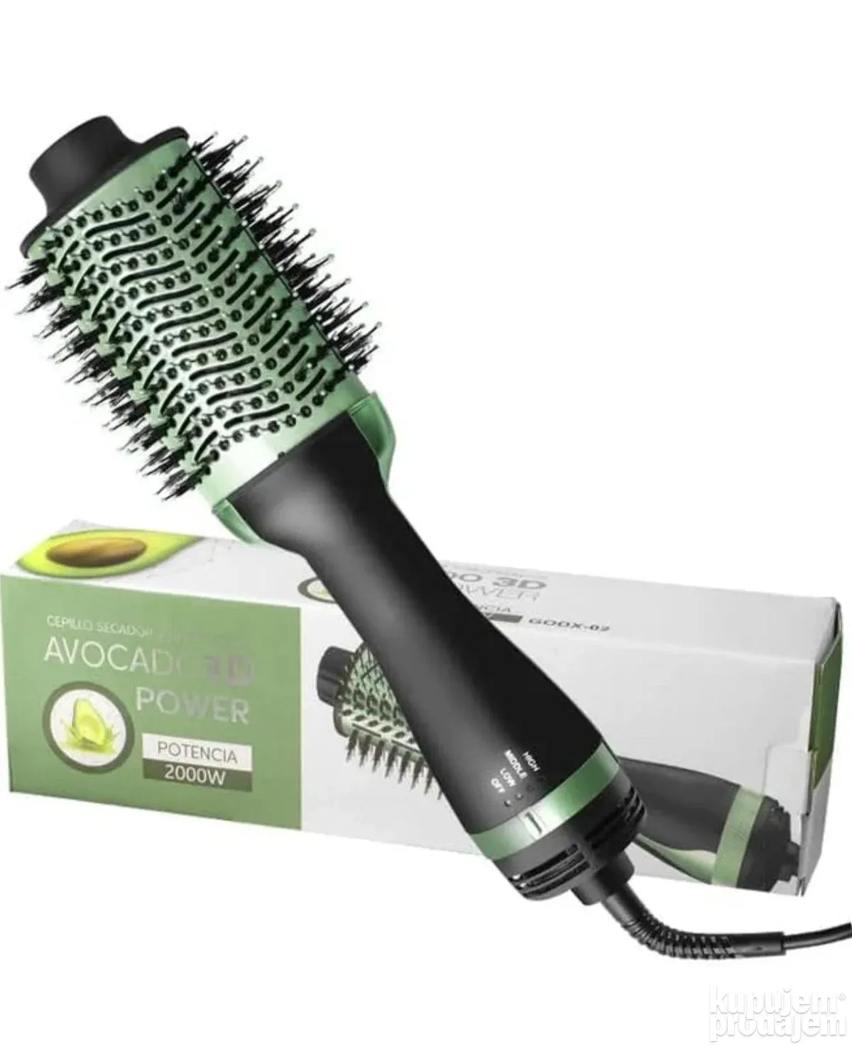 Četka sa uljem avokada deluje kao balzam za kosu, oblikuje je i suši, sve u jednom.