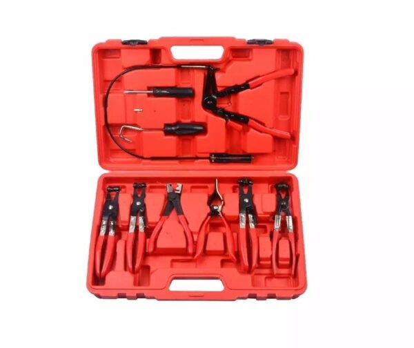 *Maxi set klešta za šelne-o! *Garnitura klešta za šelne za stezanje automobilskih creva*Za otvaranje i zatvaranje šelni*Uključuje mehanizam zaključavanja i zapornu funkciju*Klešta za selne auta set 9 kom*9 klešta različitih dimenzija, namenjenih za sve dimenzije šelni*Komplet klešta za selne za mehaničare 9 u setu za sve marke vozila*Klešta za vezice iz kabla-dozvoljavaju da uklonite crevo za spojnicu. *U set su uključeni i odvijač s različitim nastavcima te kuka za skidanje creva. .