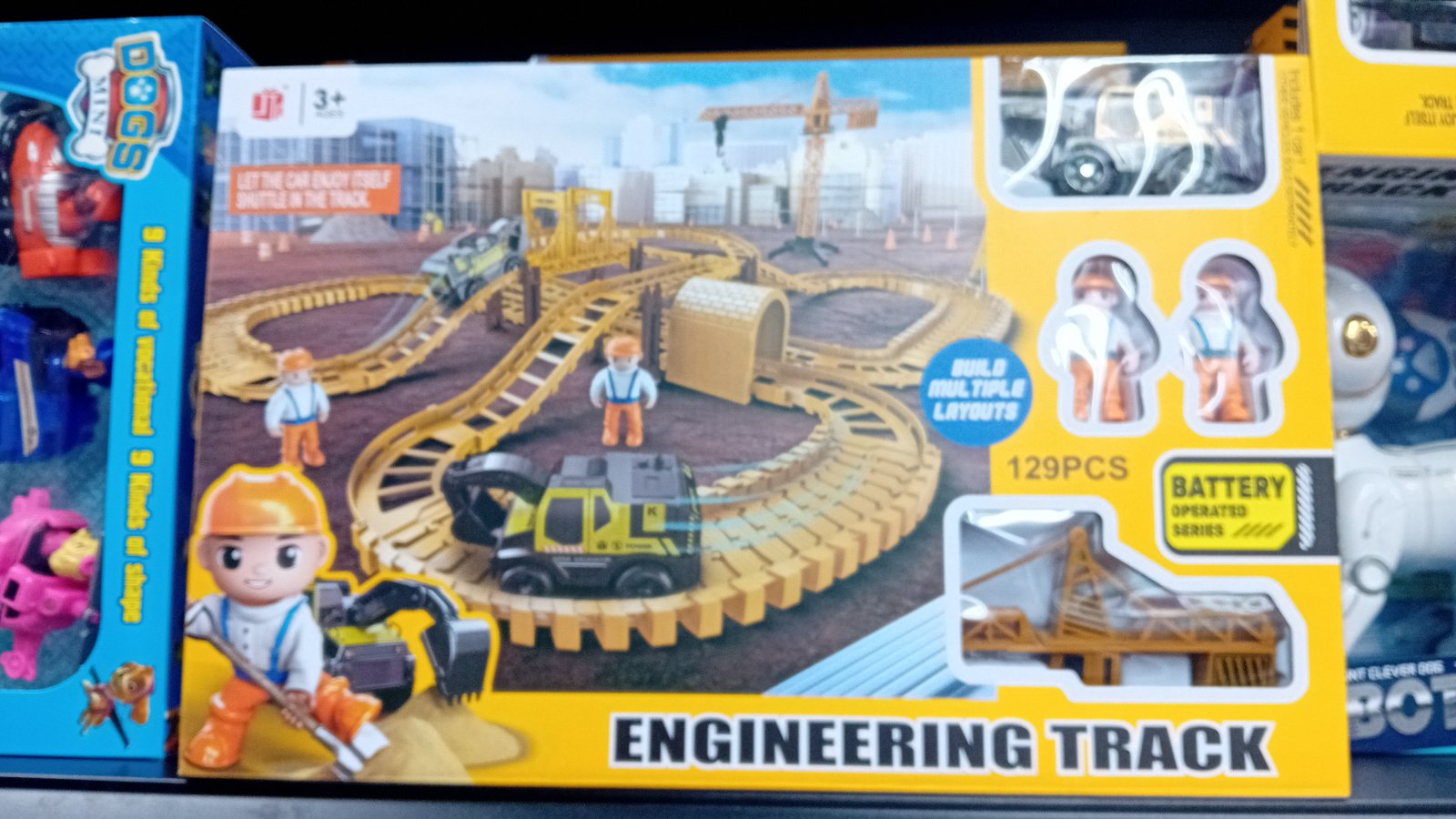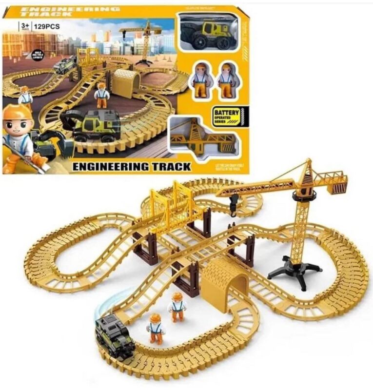 Građevinska pruga sa kranom zanimljiva dečija igračka koja se sastoji od ukupno 129 delova sa autićem na baterije.
