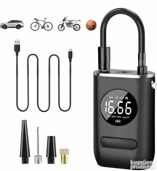 Multifunkcionalna pumpa: Ova prenosiva bežična pumpa dolazi sa 4 dodatna adaptera za naduvavanje guma automobila/motocikla/bicikla, prstenova za plivanje, kajaka, fudbalskih lopti, košarkaških lopti, bazena za veslanje, vreća za spavanje, šatora i još mnogo toga. To nije samo pumpa, već i mobilno napajanje za punjenje vašeg telefona. Pogodno kao oprema za hitne slučajeve za izlaske, putovanja, vožnju biciklom, kampovanje itd