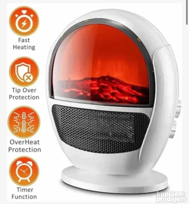 MINI KERAMIČKA GREJLICA SA EFEKTOM KAMINA BELA 1500W