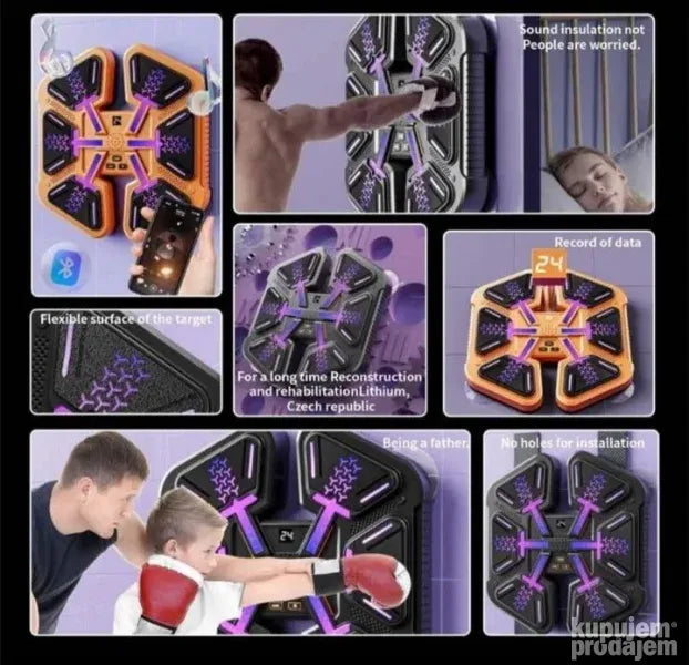 4. Fitnes pogodan za porodicu: Uživajte u besplatnom udaranju uz muziku, jačanju veština reakcije, mentalnoj agilnosti i fizičkoj kondiciji sa ovom opremom za vežbanje montiranom na zid. To je odličan način da se oslobodite stresa i uživate u kvalitetnom porodičnom vremenu, podstičući interakciju između roditelja i dece.