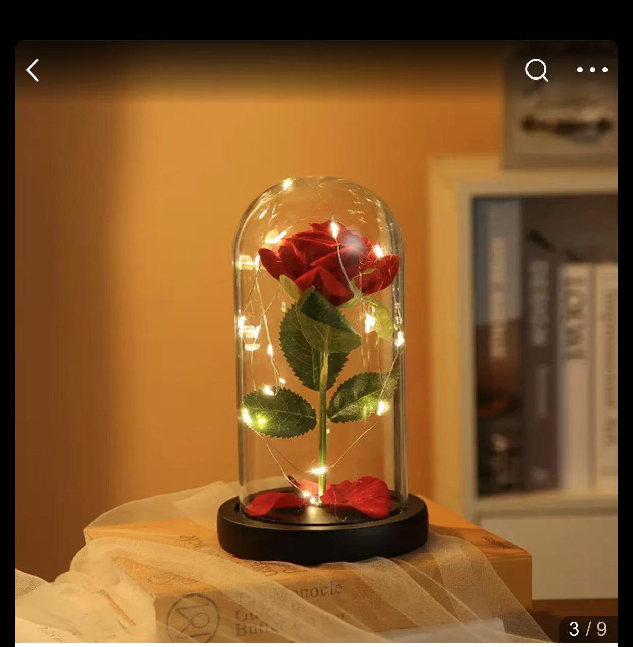 Romantična svetleća ruža u staklenoj kupoli koja nikada neće uvenuti, kao simbol večne ljubavi, inspirisano bajkom Lepotica i Zver. Ova večna ruža u staklenom zvonu idealan je poklon za dan zaljubljenih, 8.mart, rodjendan, godišnjicu i Novu Godinu. Napajanje preko 3 AAA baterije.