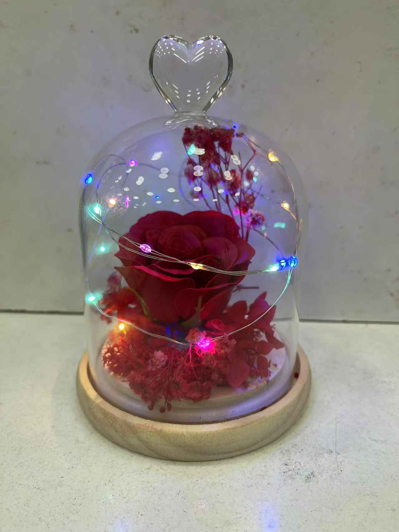 Ruza u sgaklenom zvonu sa RGB svetlom.