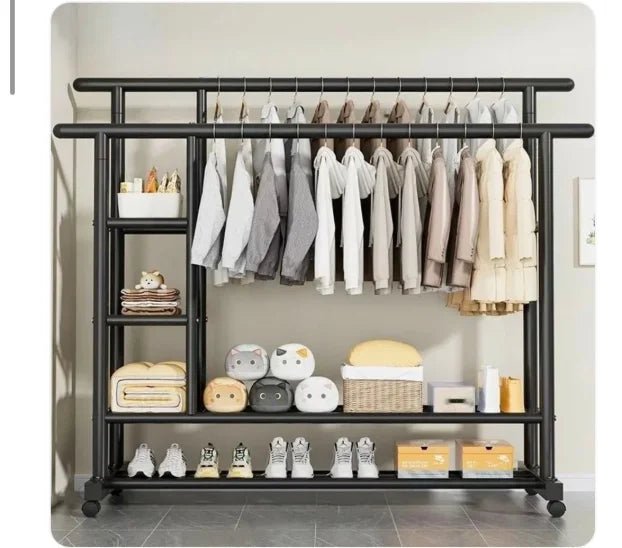 Veliki luksuzni dupli stalak za odecu sa policama.
